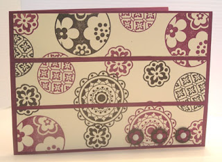 I have been creating again lately the next card is one that was made by accident. I was playing around with my circle circus stamp set on a scrap piece of cardstock and this is what I ended up with.